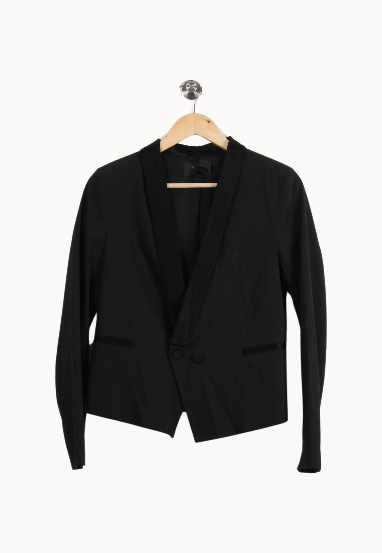 Veste de tailleur noire IKKS, taille M/38 – Élégante et intemporelle, cette veste allie la qualité de la marque IKKS à une coupe moderne adaptée à la silhouette féminine. Confectionnée en tissu noir, elle se distingue par son col châle raffiné, sa fermeture à double bouton recouvert, ainsi que par ses poches fendues bordées d’un galon satiné, détails qui lui apportent une touche unique et sophistiquée. Idéale pour une réunion professionnelle ou une soirée habillée, cette veste noire IKKS se porte facilement sur une robe ou un pantalon pour sublimer votre allure.